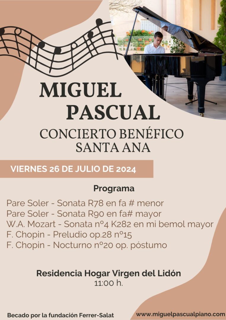 On the occasion of Saint James and Saint Anne’s Day, a charity concert will be held next july 26 at the Residencia Hogar Virgen de Lidón in Castellón.